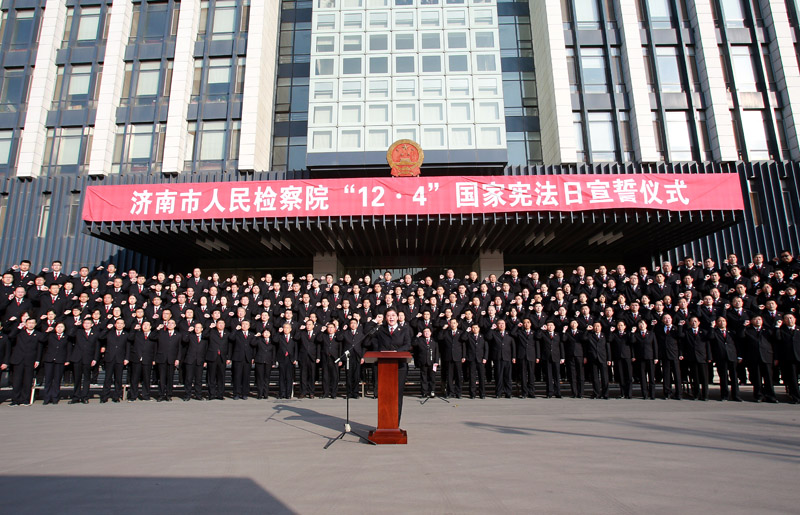 为深入学习贯彻党的十九大精神,增强宪法意识,弘扬宪法精神,维护宪法权威,12月4日上午,市院举行了国家宪法日宣誓仪式,市检察院党组书记、检察长宋文娟领誓并讲话,市院机关全体检察干警参加活动。